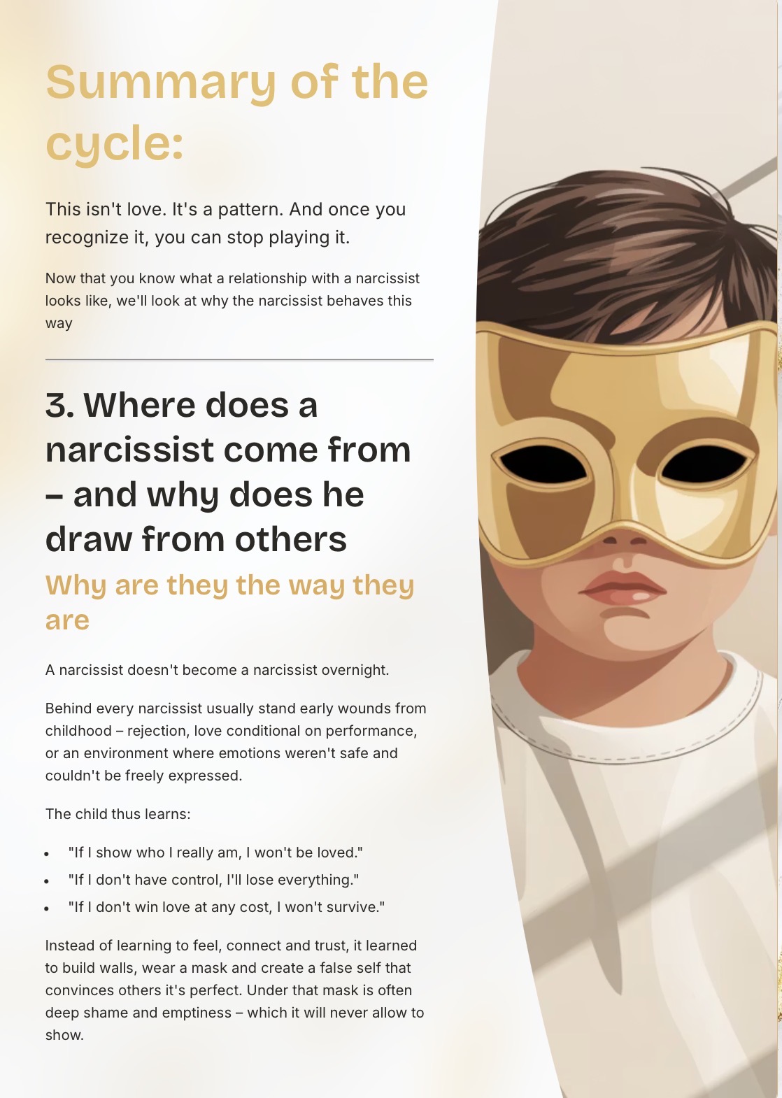 •clear explanations of the most common narcissistic relational patterns